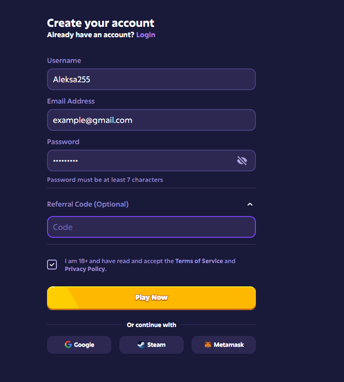 During sign-up, you’ll see a checkbox labeled “Code (Optional).” Clicking it reveals the promo input field.