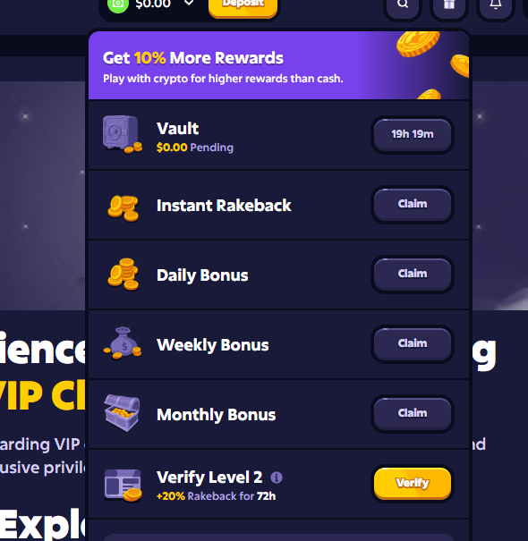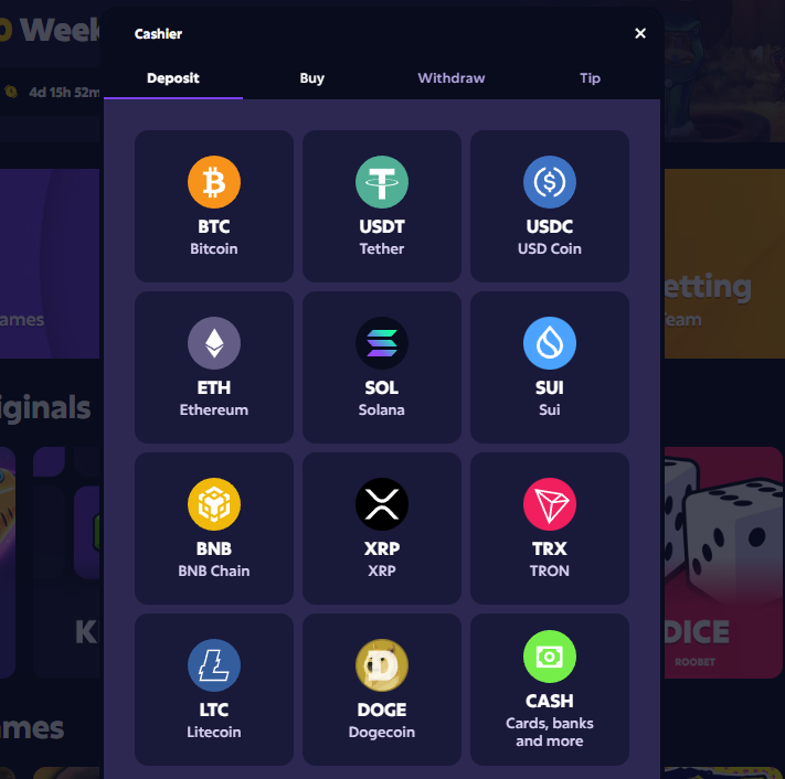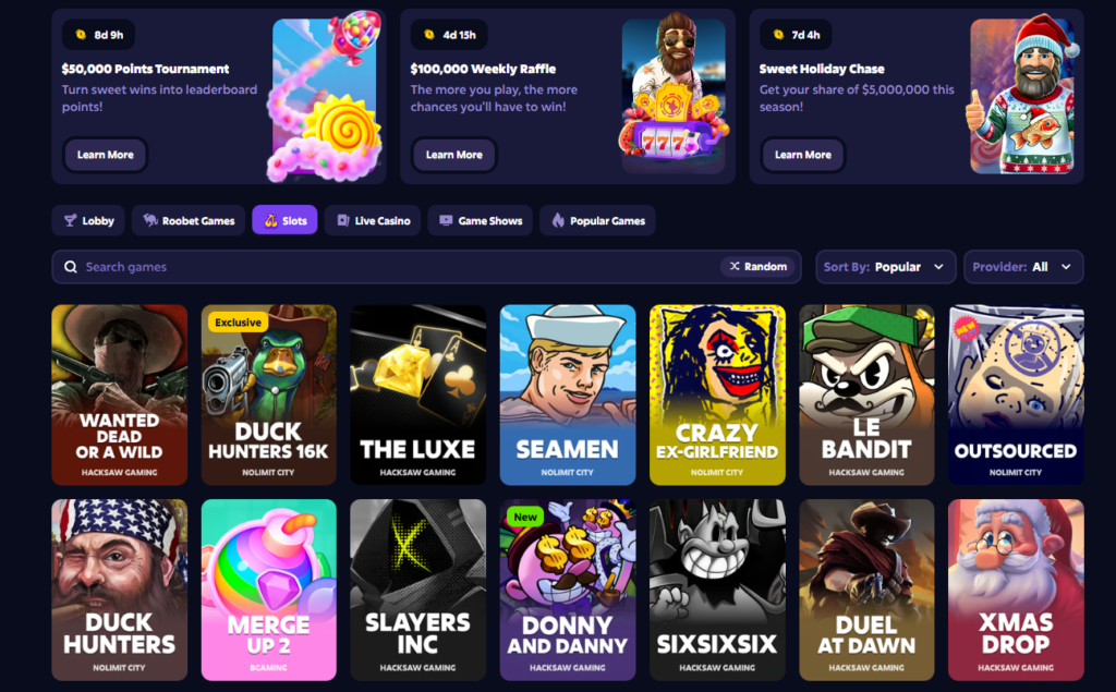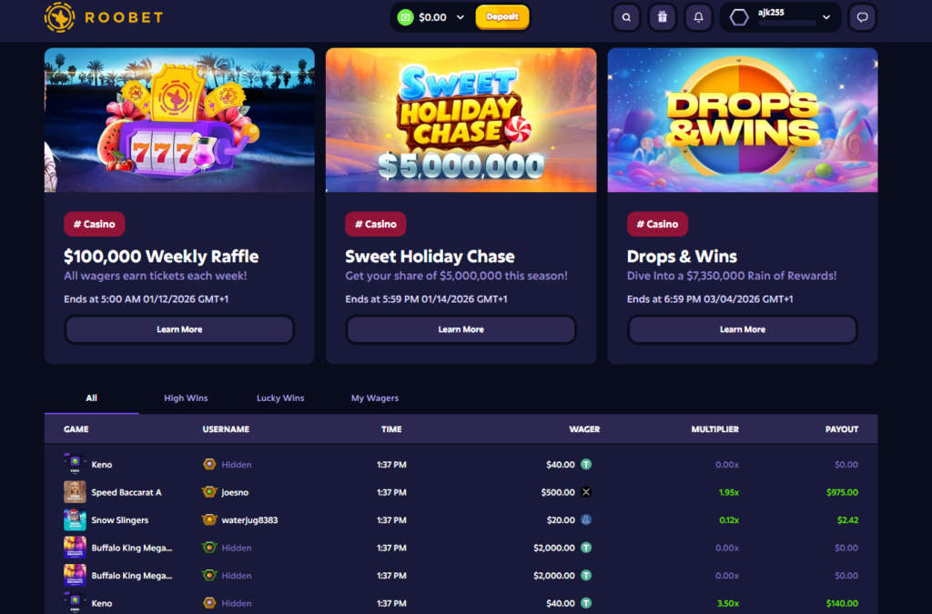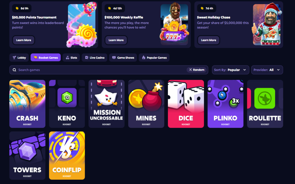 Roobet has positioned itself as a crypto-first casino that leans heavily into blockchain infrastructure. Instead of relying solely on traditional payment rails, it allows players to deposit and wager using well-known cryptocurrencies like Bitcoin and Ethereum. Transactions are built to be fast, transparent, and trackable. Add in provably fair game mechanics and layered account security, and you’ve got a setup that appeals strongly to crypto users who prefer digital assets over banks.
